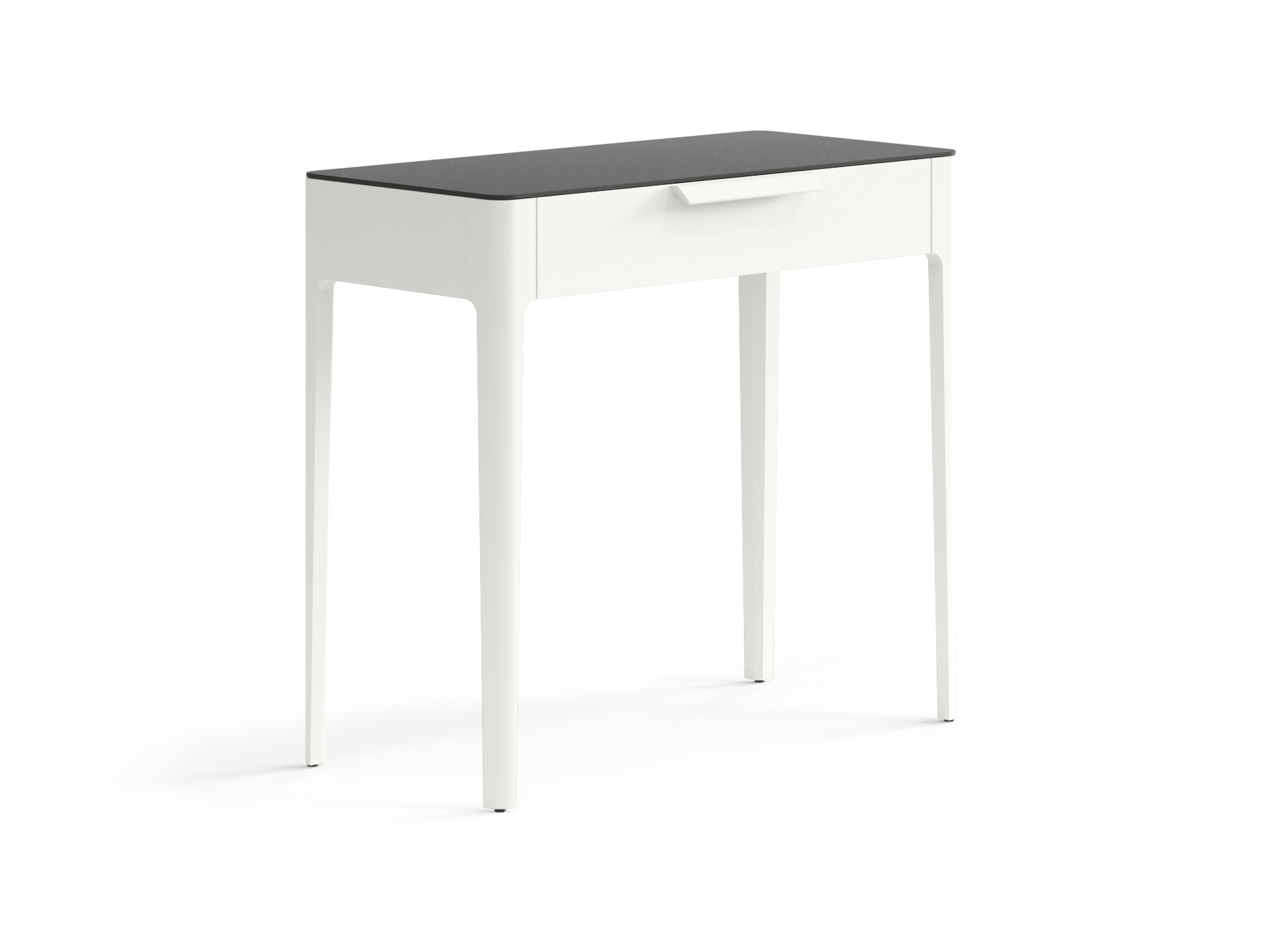 Консоль с двумя выдвижными ящиками на высоких элегантных опорах идеально впишется в любое помещение вашего дома и сделает его особенным. Изысканно сглаженные формы подчёркивают теплоту дерева, наполняют пространство природной гармонией. Скрытые направляющие ящиков с доводчиками и ручки в форме крыла делают пользование консолью мягким, уверенным и максимально комфортным. Столешница выполнена из керамогранита, крепкая поверхность приятна на вид и на ощупь. Ваза с букетом свежих цветов, любимые сборники литературы и тёплый торшер на консоли создадут истинный уют.