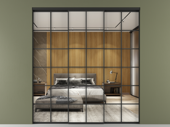 Алюминиевые перегородки имеют единый профиль с алюминиевыми дверьми и легко сочетаются в одном пространстве, не перегружая его. Также их можно комбинировать в интерьере с полотнами из нашего стандартного ассортимента. Помимо этого, система алюминиевых перегородок и дверей координируется со стеновыми панелями Волховец.