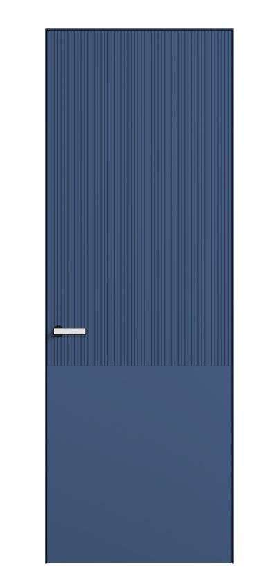Это полотна с рельефной фрезеровкой. Этот прием делает интерьер объемным, тактильным, вносит интересную текстуру и создает современный образ. Волнистый рельеф может быть выполнен по ламелям из массива дуба в древесных матовых отделках, либо исполнен по натуральному и экологически безопасному материалу — ХДФ, покрытому гладкой эмалью актуальных оттенков.
