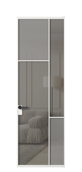 Дверь межкомнатная АЛПЛ041.13 АБЛСерый сатин матовое + Серый прозрачное. Цвет Алюминий белоснежный. Материал Алюминий в эмали. Коллекция Mosaic. Картинка.