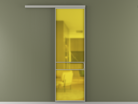 АЛПР 040.02. Алюминий нейтральный серый Сатинированное жёлтое стекло, триплекс, 6мм