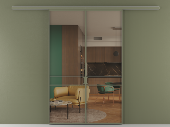 Алюминиевые перегородки имеют единый профиль с алюминиевыми дверьми и легко сочетаются в одном пространстве, не перегружая его. Также их можно комбинировать в интерьере с полотнами из нашего стандартного ассортимента. Помимо этого, система алюминиевых перегородок и дверей координируется со стеновыми панелями Волховец.