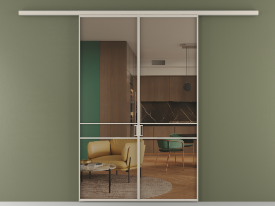 Во всех алюминиевых перегородках, независимо от типа установки, используется компланарный раздвижной механизм, благодаря которому декоративная крышка и полотно находятся в одной плоскости.