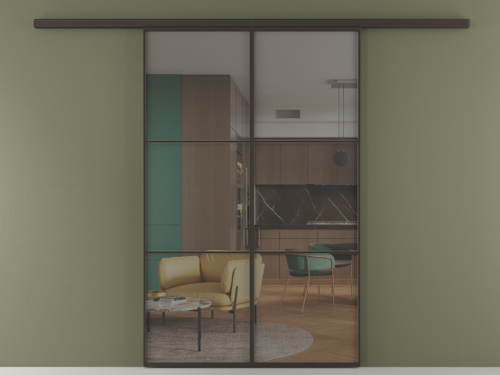 Алюминиевые перегородки имеют единый профиль с алюминиевыми дверьми и легко сочетаются в одном пространстве, не перегружая его. Также их можно комбинировать в интерьере с полотнами из нашего стандартного ассортимента. Помимо этого, система алюминиевых перегородок и дверей координируется со стеновыми панелями Волховец.