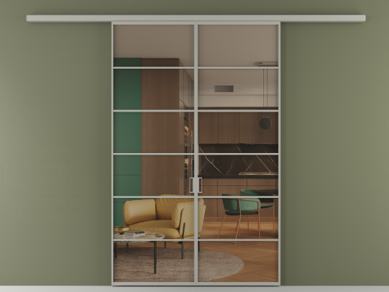 Алюминиевые перегородки имеют единый профиль с алюминиевыми дверьми и легко сочетаются в одном пространстве, не перегружая его. Также их можно комбинировать в интерьере с полотнами из нашего стандартного ассортимента. Помимо этого, система алюминиевых перегородок и дверей координируется со стеновыми панелями Волховец.