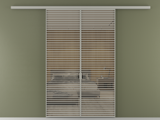 Дополнительно на раздвижную двустворчатую перегородку вдоль стены и четырёхстворчатую перегородку внутри проёма с двумя неподвижным полотнами можно установить механизм синхронного открывания — при открывании одной створки, вторая открывается автоматически.