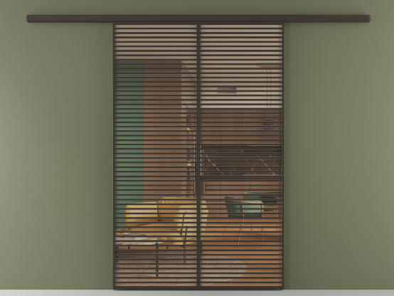 Во всех алюминиевых перегородках, независимо от типа установки, используется компланарный раздвижной механизм, благодаря которому декоративная крышка и полотно находятся в одной плоскости.