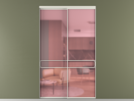 АЛПР 040.02. Алюминий Белый Сатинированное розовое стекло, триплекс, 6мм