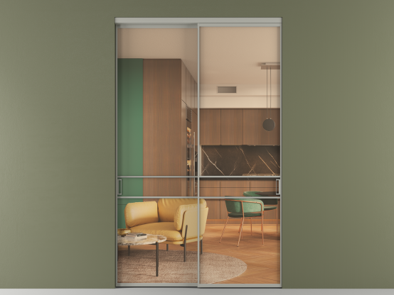 Алюминиевые перегородки имеют единый профиль с алюминиевыми дверьми и легко сочетаются в одном пространстве, не перегружая его. Также их можно комбинировать в интерьере с полотнами из нашего стандартного ассортимента. Помимо этого, система алюминиевых перегородок и дверей координируется со стеновыми панелями Волховец.