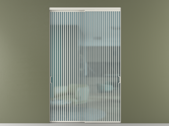 Дополнительно на раздвижную двустворчатую перегородку вдоль стены и четырёхстворчатую перегородку внутри проёма с двумя неподвижным полотнами можно установить механизм синхронного открывания — при открывании одной створки, вторая открывается автоматически.