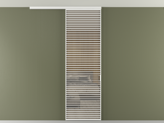 Во всех алюминиевых перегородках, независимо от типа установки, используется компланарный раздвижной механизм, благодаря которому декоративная крышка и полотно находятся в одной плоскости.