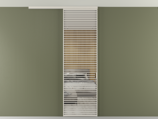 Во всех алюминиевых перегородках, независимо от типа установки, используется компланарный раздвижной механизм, благодаря которому декоративная крышка и полотно находятся в одной плоскости.