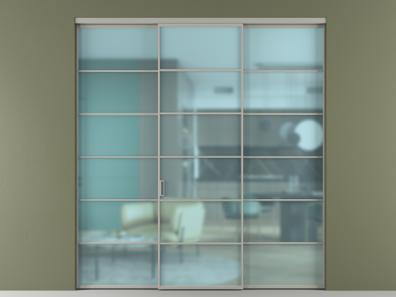 Дополнительно на раздвижную двустворчатую перегородку вдоль стены и четырёхстворчатую перегородку внутри проёма с двумя неподвижным полотнами можно установить механизм синхронного открывания — при открывании одной створки, вторая открывается автоматически.