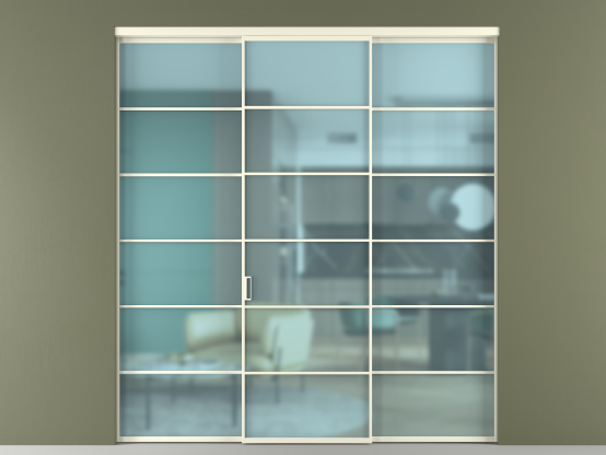 Дополнительно на раздвижную двустворчатую перегородку вдоль стены и четырёхстворчатую перегородку внутри проёма с двумя неподвижным полотнами можно установить механизм синхронного открывания — при открывании одной створки, вторая открывается автоматически.