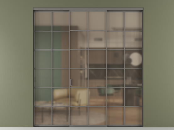 Дополнительно на раздвижную двустворчатую перегородку вдоль стены и четырёхстворчатую перегородку внутри проёма с двумя неподвижным полотнами можно установить механизм синхронного открывания — при открывании одной створки, вторая открывается автоматически.
