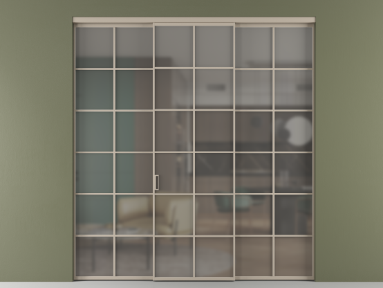 Дополнительно на раздвижную двустворчатую перегородку вдоль стены и четырёхстворчатую перегородку внутри проёма с двумя неподвижным полотнами можно установить механизм синхронного открывания — при открывании одной створки, вторая открывается автоматически.