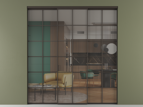 Алюминиевые перегородки имеют единый профиль с алюминиевыми дверьми и легко сочетаются в одном пространстве, не перегружая его. Также их можно комбинировать в интерьере с полотнами из нашего стандартного ассортимента. Помимо этого, система алюминиевых перегородок и дверей координируется со стеновыми панелями Волховец.