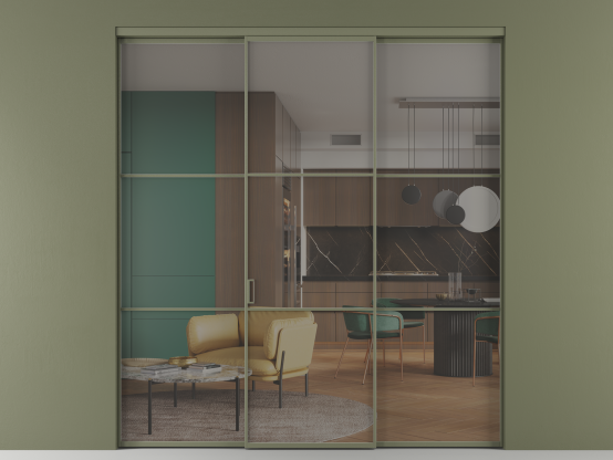 Алюминиевые перегородки имеют единый профиль с алюминиевыми дверьми и легко сочетаются в одном пространстве, не перегружая его. Также их можно комбинировать в интерьере с полотнами из нашего стандартного ассортимента. Помимо этого, система алюминиевых перегородок и дверей координируется со стеновыми панелями Волховец.