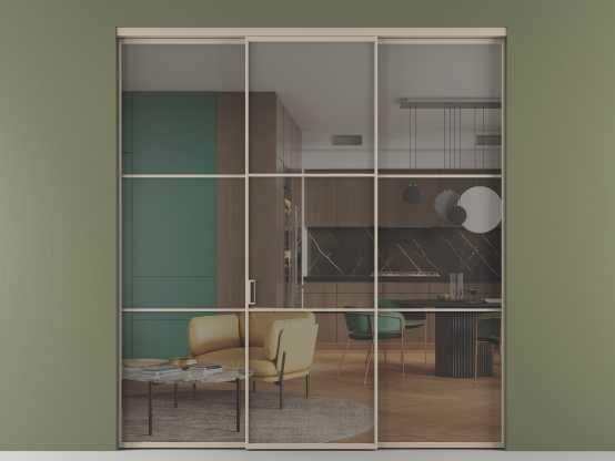 Алюминиевые перегородки имеют единый профиль с алюминиевыми дверьми и легко сочетаются в одном пространстве, не перегружая его. Также их можно комбинировать в интерьере с полотнами из нашего стандартного ассортимента. Помимо этого, система алюминиевых перегородок и дверей координируется со стеновыми панелями Волховец.