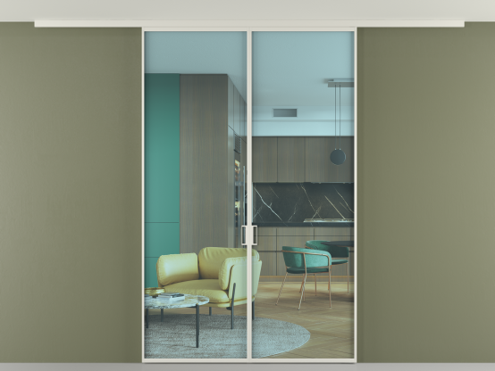 Во всех алюминиевых перегородках, независимо от типа установки, используется компланарный раздвижной механизм, благодаря которому декоративная крышка и полотно находятся в одной плоскости.
