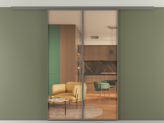 Алюминиевые перегородки имеют единый профиль с алюминиевыми дверьми и легко сочетаются в одном пространстве, не перегружая его. Также их можно комбинировать в интерьере с полотнами из нашего стандартного ассортимента. Помимо этого, система алюминиевых перегородок и дверей координируется со стеновыми панелями Волховец.