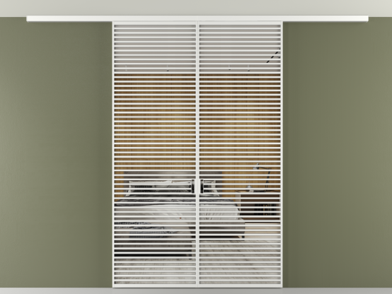 Дополнительно на раздвижную двустворчатую перегородку вдоль стены и четырёхстворчатую перегородку внутри проёма с двумя неподвижным полотнами можно установить механизм синхронного открывания — при открывании одной створки, вторая открывается автоматически.