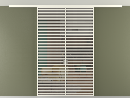 Дополнительно на раздвижную двустворчатую перегородку вдоль стены и четырёхстворчатую перегородку внутри проёма с двумя неподвижным полотнами можно установить механизм синхронного открывания — при открывании одной створки, вторая открывается автоматически.