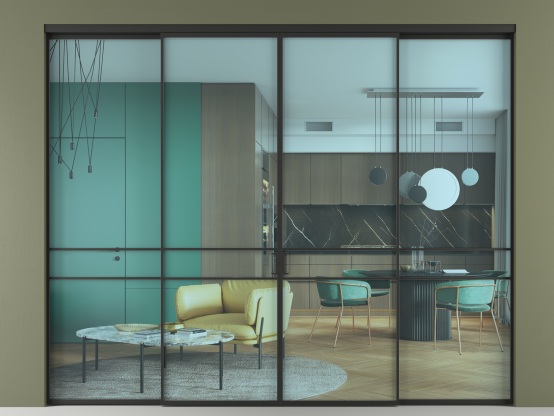 Алюминиевые перегородки Formato — это стильное и функциональное решение для современных интерьеров, предназначенное для разделения и зонирования пространства внутри одного помещения. Перегородки изготавливаются под индивидуальные размеры с шагом в 1 мм, что даёт возможность подобрать оптимальное соотношение размеров и количества створок, в том числе и для нестандартных проёмов.
