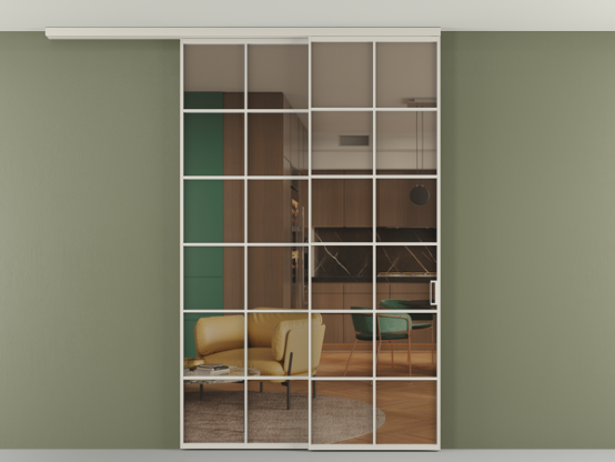 Алюминиевые перегородки имеют единый профиль с алюминиевыми дверьми и легко сочетаются в одном пространстве, не перегружая его. Также их можно комбинировать в интерьере с полотнами из нашего стандартного ассортимента. Помимо этого, система алюминиевых перегородок и дверей координируется со стеновыми панелями Волховец.
