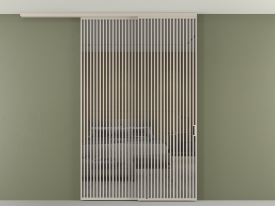 Дополнительно на раздвижную двустворчатую перегородку вдоль стены и четырёхстворчатую перегородку внутри проёма с двумя неподвижным полотнами можно установить механизм синхронного открывания — при открывании одной створки, вторая открывается автоматически.