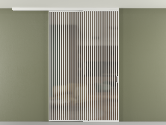 Во всех алюминиевых перегородках, независимо от типа установки, используется компланарный раздвижной механизм, благодаря которому декоративная крышка и полотно находятся в одной плоскости.