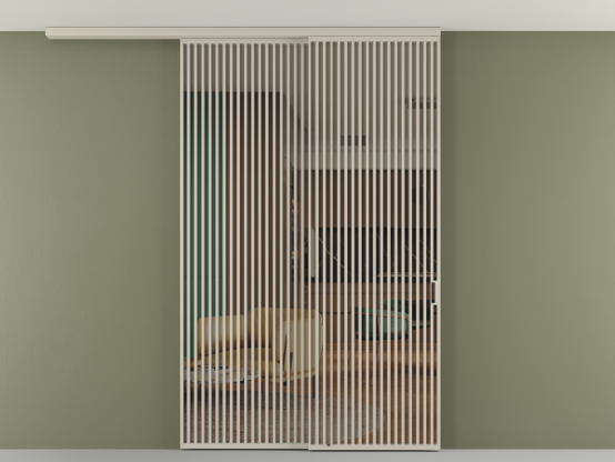 Дополнительно на раздвижную двустворчатую перегородку вдоль стены и четырёхстворчатую перегородку внутри проёма с двумя неподвижным полотнами можно установить механизм синхронного открывания — при открывании одной створки, вторая открывается автоматически.
