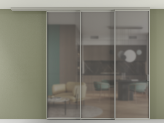 Во всех алюминиевых перегородках, независимо от типа установки, используется компланарный раздвижной механизм, благодаря которому декоративная крышка и полотно находятся в одной плоскости.