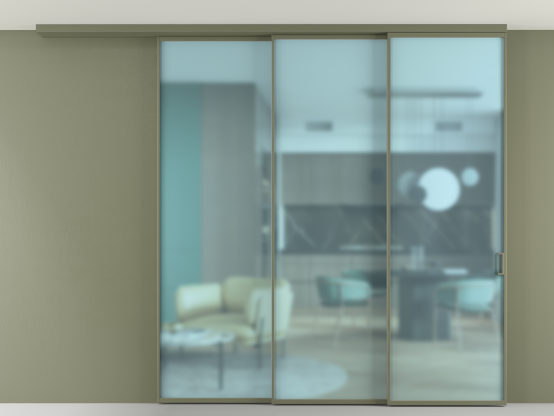Перегородка Formato вдоль стены на потолок 3 створки с синхронным механизмом