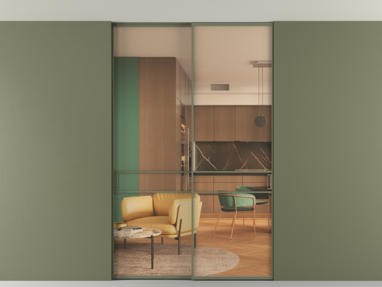 Алюминиевые перегородки имеют единый профиль с алюминиевыми дверьми и легко сочетаются в одном пространстве, не перегружая его. Также их можно комбинировать в интерьере с полотнами из нашего стандартного ассортимента. Помимо этого, система алюминиевых перегородок и дверей координируется со стеновыми панелями Волховец.