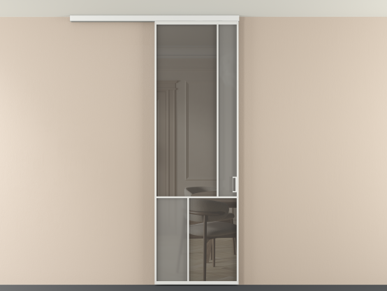 Во всех алюминиевых перегородках, независимо от типа установки, используется компланарный раздвижной механизм, благодаря которому декоративная крышка и полотно находятся в одной плоскости.