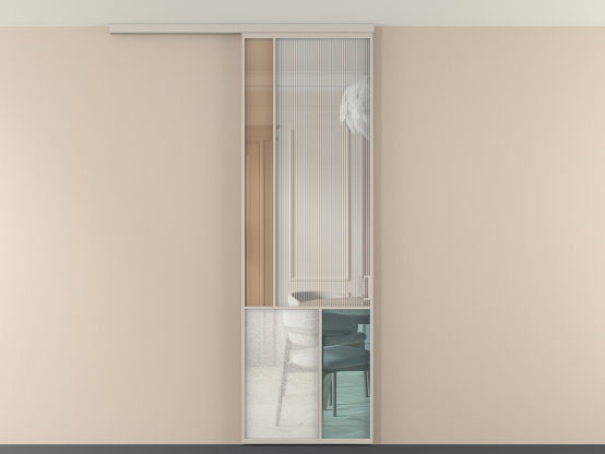 Во всех алюминиевых перегородках, независимо от типа установки, используется компланарный раздвижной механизм, благодаря которому декоративная крышка и полотно находятся в одной плоскости.