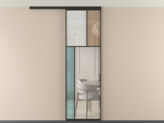 Во всех алюминиевых перегородках, независимо от типа установки, используется компланарный раздвижной механизм, благодаря которому декоративная крышка и полотно находятся в одной плоскости.