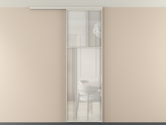 Во всех алюминиевых перегородках, независимо от типа установки, используется компланарный раздвижной механизм, благодаря которому декоративная крышка и полотно находятся в одной плоскости.