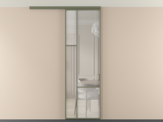 АЛПР 041.13. Алюминий оливковый тёмный Рифлёное стекло "Дюна" + Фактурное стекло "Лёд"
