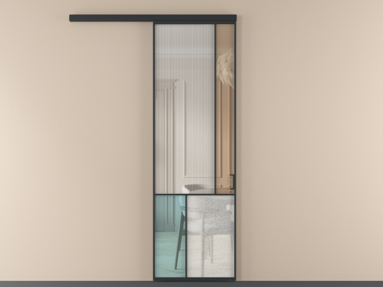 Во всех алюминиевых перегородках, независимо от типа установки, используется компланарный раздвижной механизм, благодаря которому декоративная крышка и полотно находятся в одной плоскости.