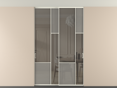 Дополнительно на раздвижную двустворчатую перегородку вдоль стены и четырехстворчатую перегородку внутри проема с двумя неподвижным полотнами можно установить механизм синхронного открывания — при открывании одной створки, вторая открывается автоматически.