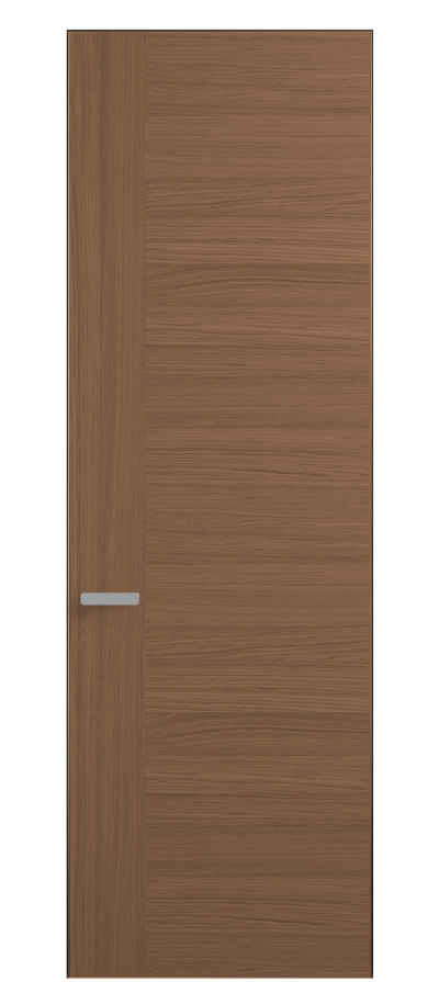 Полотно Rift в скрытом алюминиевом коробе становится полноценным элементом декора. В коллекции представлено 9 моделей дверей в высоте до 3 метров. Рисунок раскладки шпона варьируется от простого до сложного. «Рубашка» для каждого полотна подбирается вручную по цвету, текстуре и фактуре.