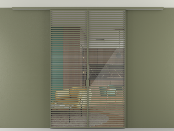 Дополнительно на раздвижную двустворчатую перегородку вдоль стены и четырёхстворчатую перегородку внутри проёма с двумя неподвижным полотнами можно установить механизм синхронного открывания — при открывании одной створки, вторая открывается автоматически.