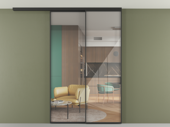 Алюминиевые перегородки имеют единый профиль с алюминиевыми дверьми и легко сочетаются в одном пространстве, не перегружая его. Также их можно комбинировать в интерьере с полотнами из нашего стандартного ассортимента. Помимо этого, система алюминиевых перегородок и дверей координируется со стеновыми панелями Волховец.