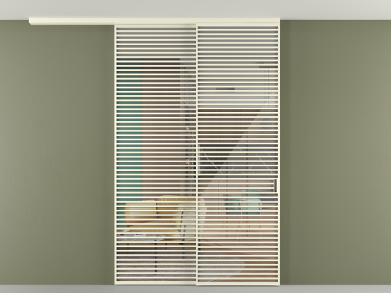 Дополнительно на раздвижную двустворчатую перегородку вдоль стены и четырёхстворчатую перегородку внутри проёма с двумя неподвижным полотнами можно установить механизм синхронного открывания — при открывании одной створки, вторая открывается автоматически.