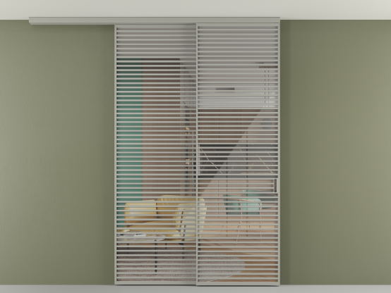 Дополнительно на раздвижную двустворчатую перегородку вдоль стены и четырёхстворчатую перегородку внутри проёма с двумя неподвижным полотнами можно установить механизм синхронного открывания — при открывании одной створки, вторая открывается автоматически.