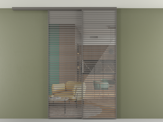 Во всех алюминиевых перегородках, независимо от типа установки, используется компланарный раздвижной механизм, благодаря которому декоративная крышка и полотно находятся в одной плоскости.
