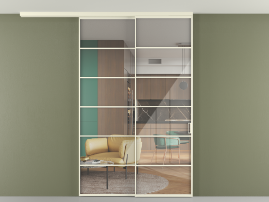 Алюминиевые перегородки имеют единый профиль с алюминиевыми дверьми и легко сочетаются в одном пространстве, не перегружая его. Также их можно комбинировать в интерьере с полотнами из нашего стандартного ассортимента. Помимо этого, система алюминиевых перегородок и дверей координируется со стеновыми панелями Волховец.