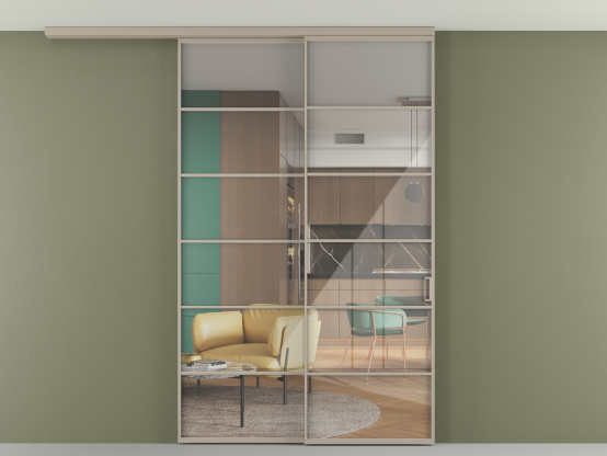 Алюминиевые перегородки имеют единый профиль с алюминиевыми дверьми и легко сочетаются в одном пространстве, не перегружая его. Также их можно комбинировать в интерьере с полотнами из нашего стандартного ассортимента. Помимо этого, система алюминиевых перегородок и дверей координируется со стеновыми панелями Волховец.